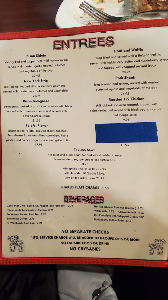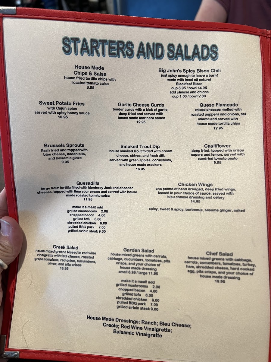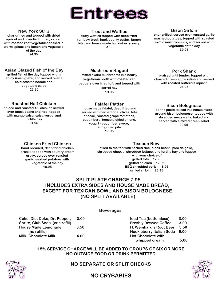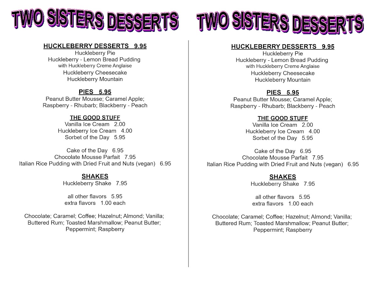 Step into Two Sisters Cafe, a charming spot nestled in Babb, Montana, where culinary delights await. The menu shines with unique offerings like the Trout and Waffles—deep-fried rainbow trout paired elegantly with waffles, huckleberry butter, and syrup for $31.95. For burger enthusiasts, the Red Burger boasts a juicy 1/3 lb black Angus patty topped with bacon, cheese, and grilled veggies, served with crispy fries at $16.95. The drinks are equally enticing, featuring a refreshing Margarita made with fresh lime juice for just $8.95.